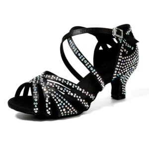 Latin dance shoes Black silver diamond inlaid dance shoes Special dance shoes Latin dance shoes High heels 7.5cm