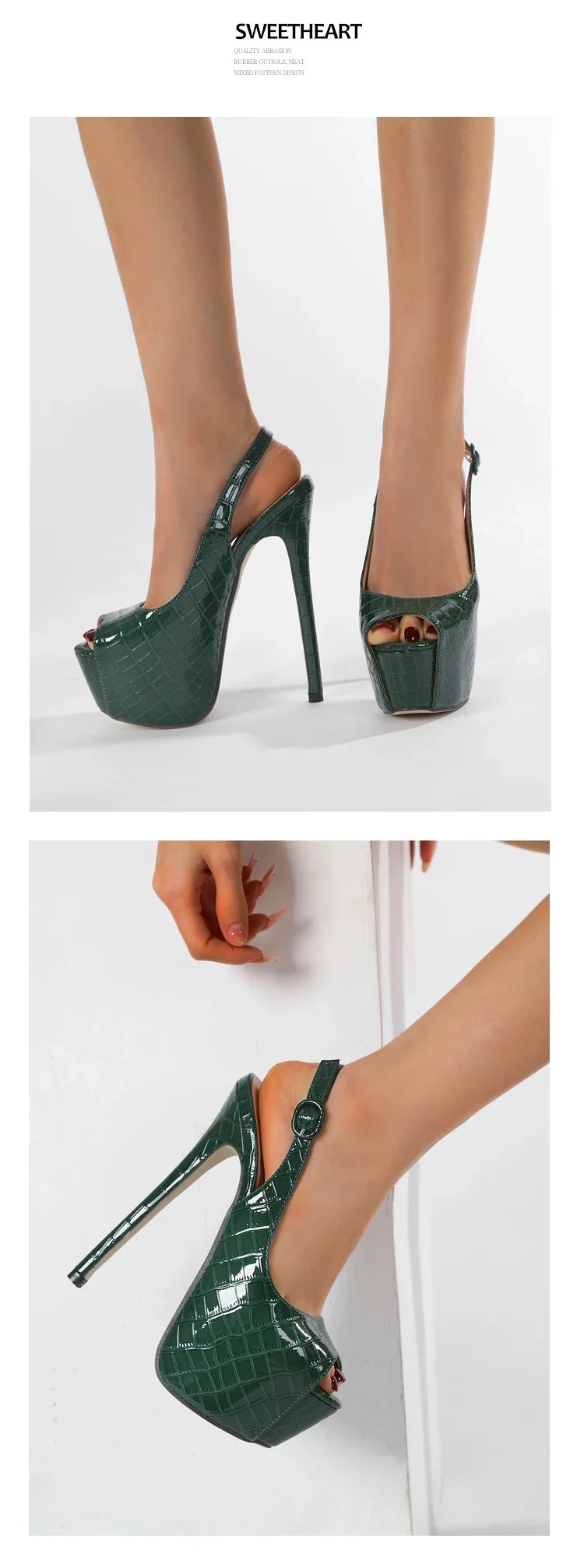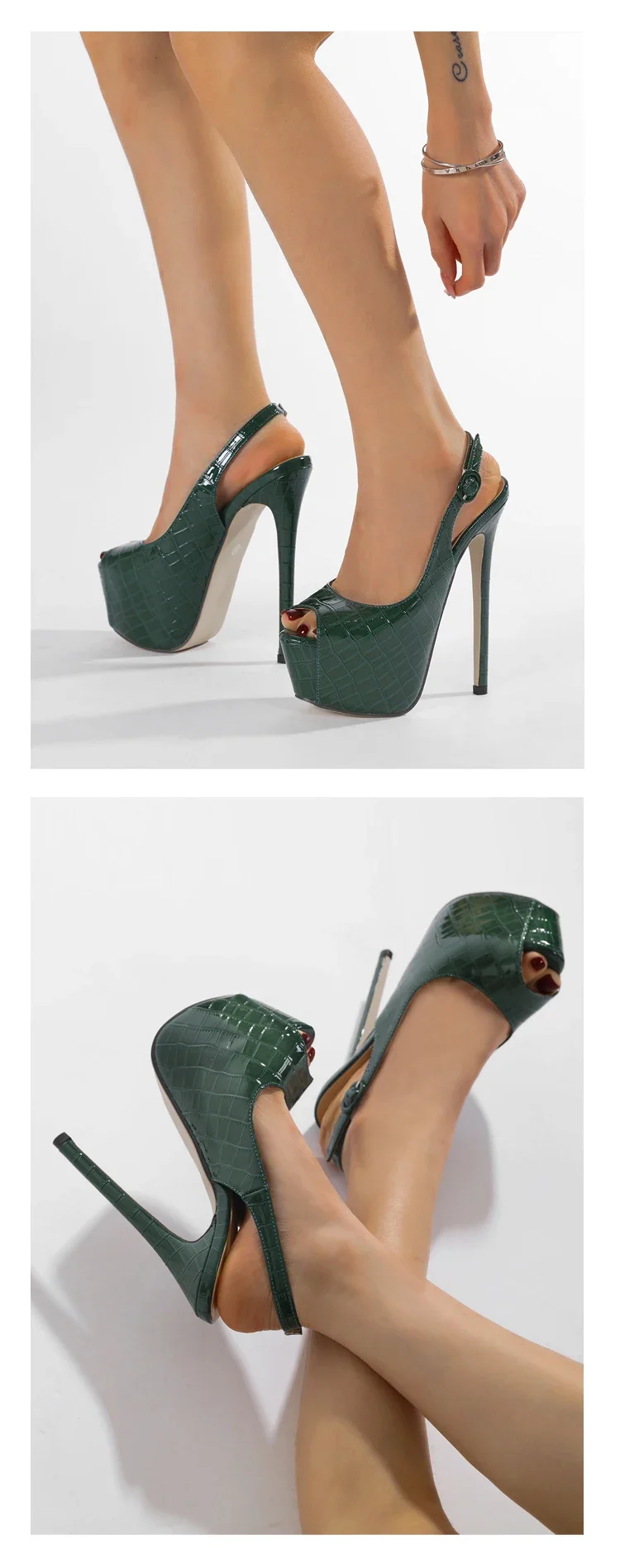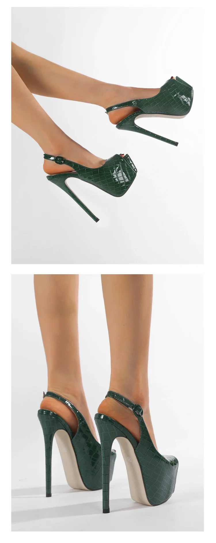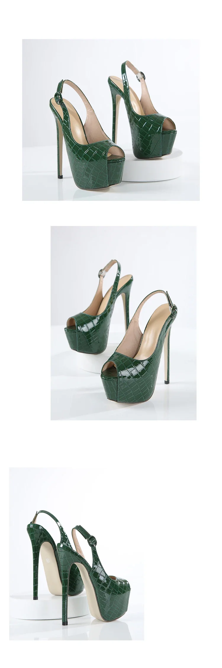 Aneikeh 2025 Spring Autumn Women Platform Pumps Back Buckle Strap Super High Heels Pole Dance Shoes Stiletto Mujer Green