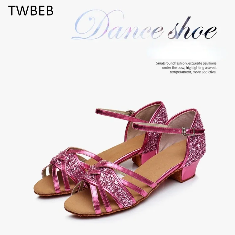 Child Dance Shoe For Girls/Kids/Women Ballroom Latin Shoe Ladies Modern Tango Salsa Sandals Dancing Shoe 3CM Low Heel cow split
