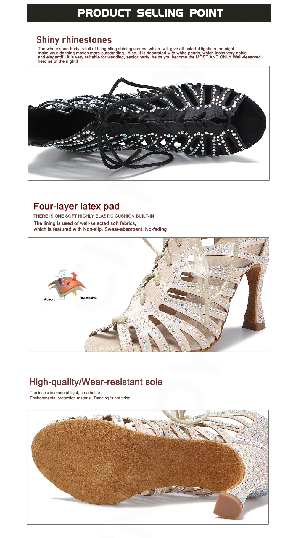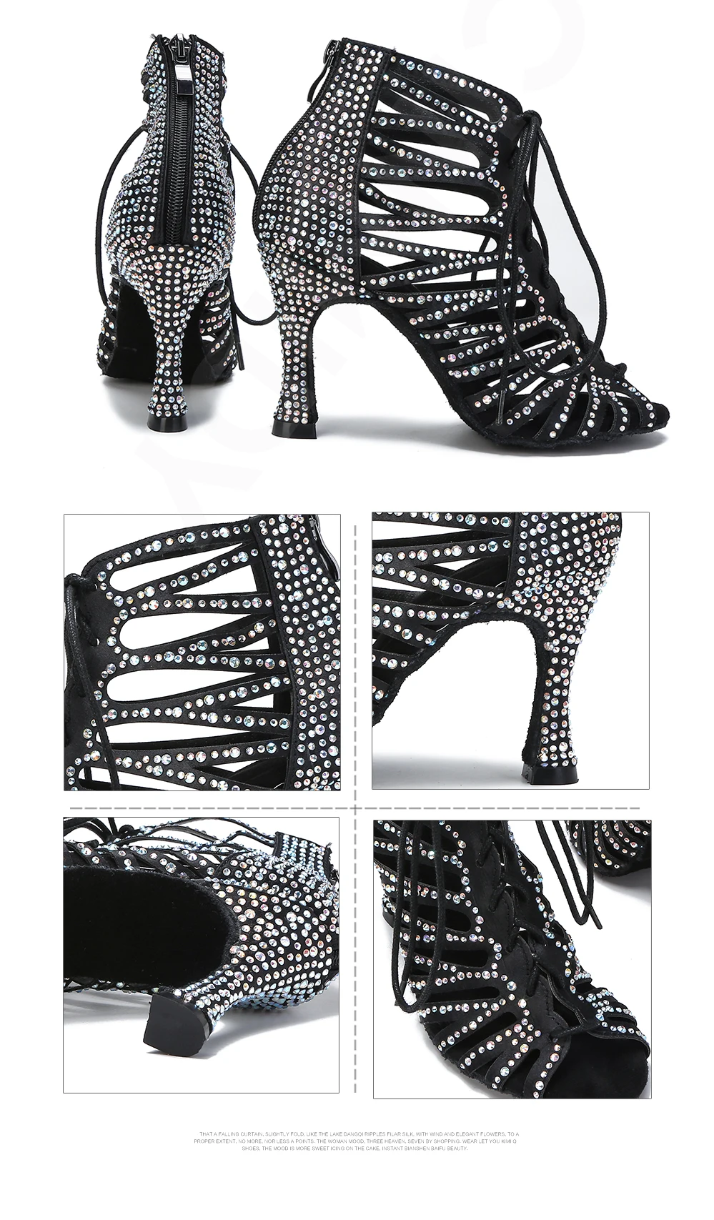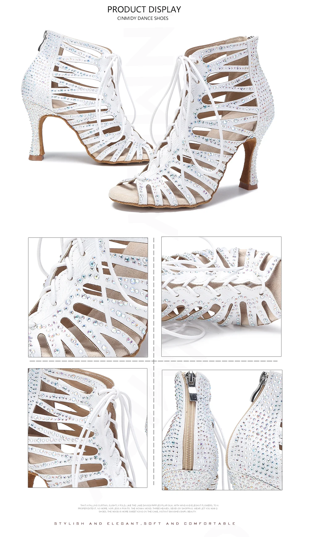 CINMIDY Latin Dance Shoes Women Indoor Hollow Out Ballroom Dance Boots High Heels Party Shoes Tango Salsa Shoes For Dancing