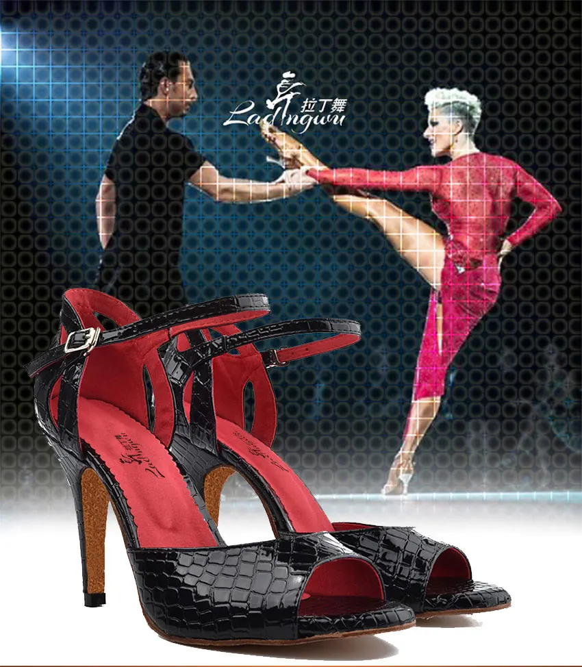 Ladingwu New Salsa Shoes Dance Women’s High Heel Shoes Sandals 10cm Party Performance women Latin Dance Shoes Red Black PU