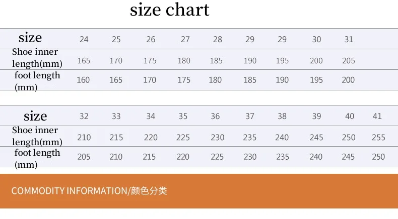 Shoe Size | 25, 26, 27, 28, 29, 30, 31, 32, 33, 34, 35, 36, 37, 38, 39, 40, 41 |