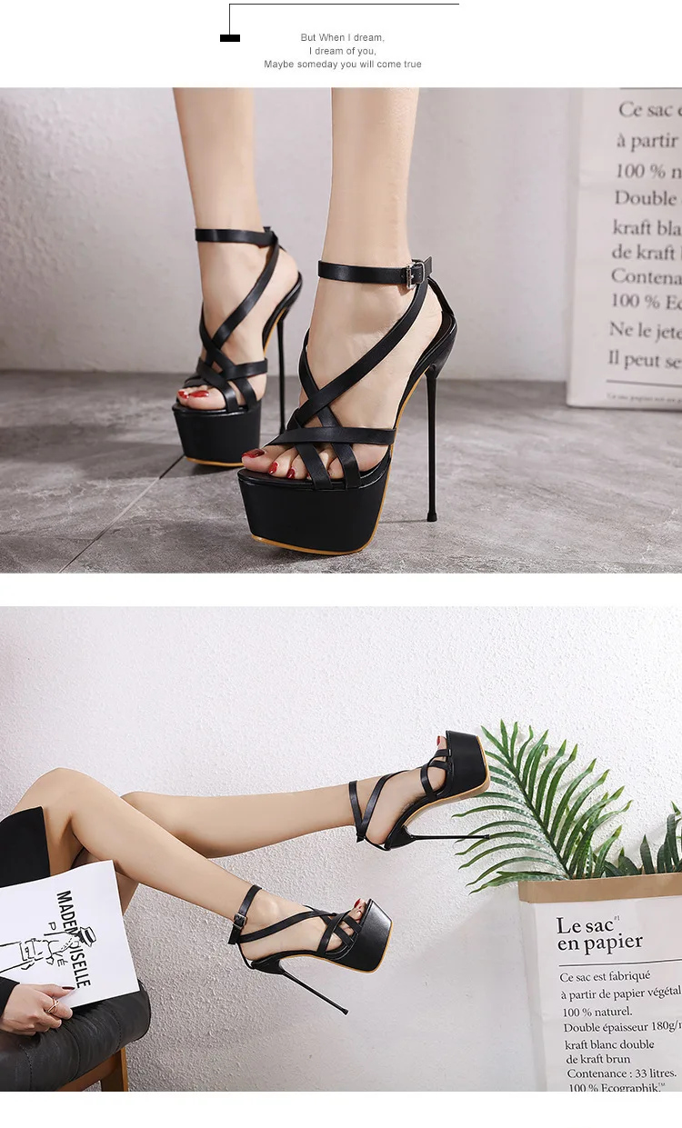 Miaoguan 2023Summer Women Sandals Pumps Party Shoes Platform Sexy Elegant Stiletto Open Toe Super High Heel Stripper Shoes Black