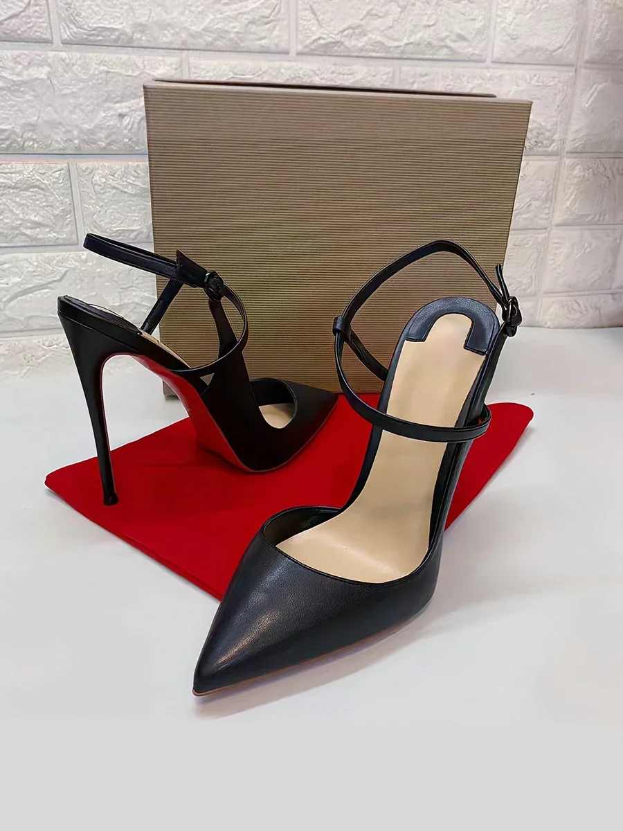 New summer and autumn black 12cm lace up high-heeled sandals with sexy slim heels and pointed stylish single shoes