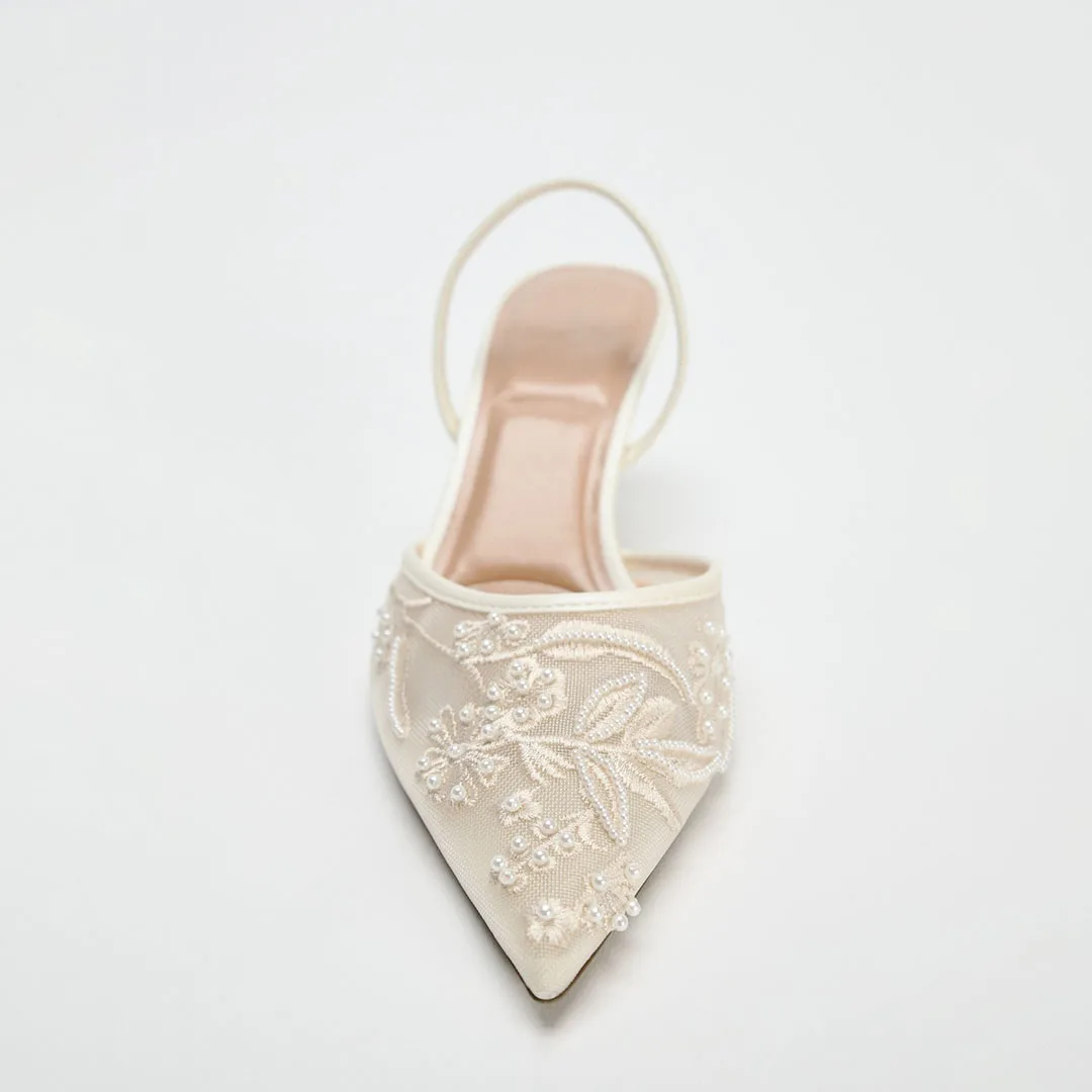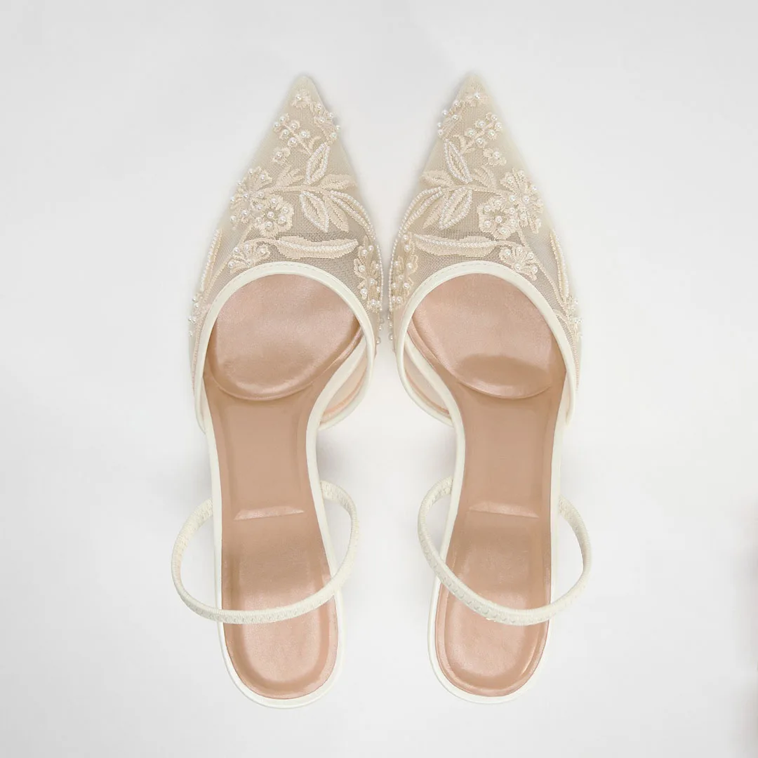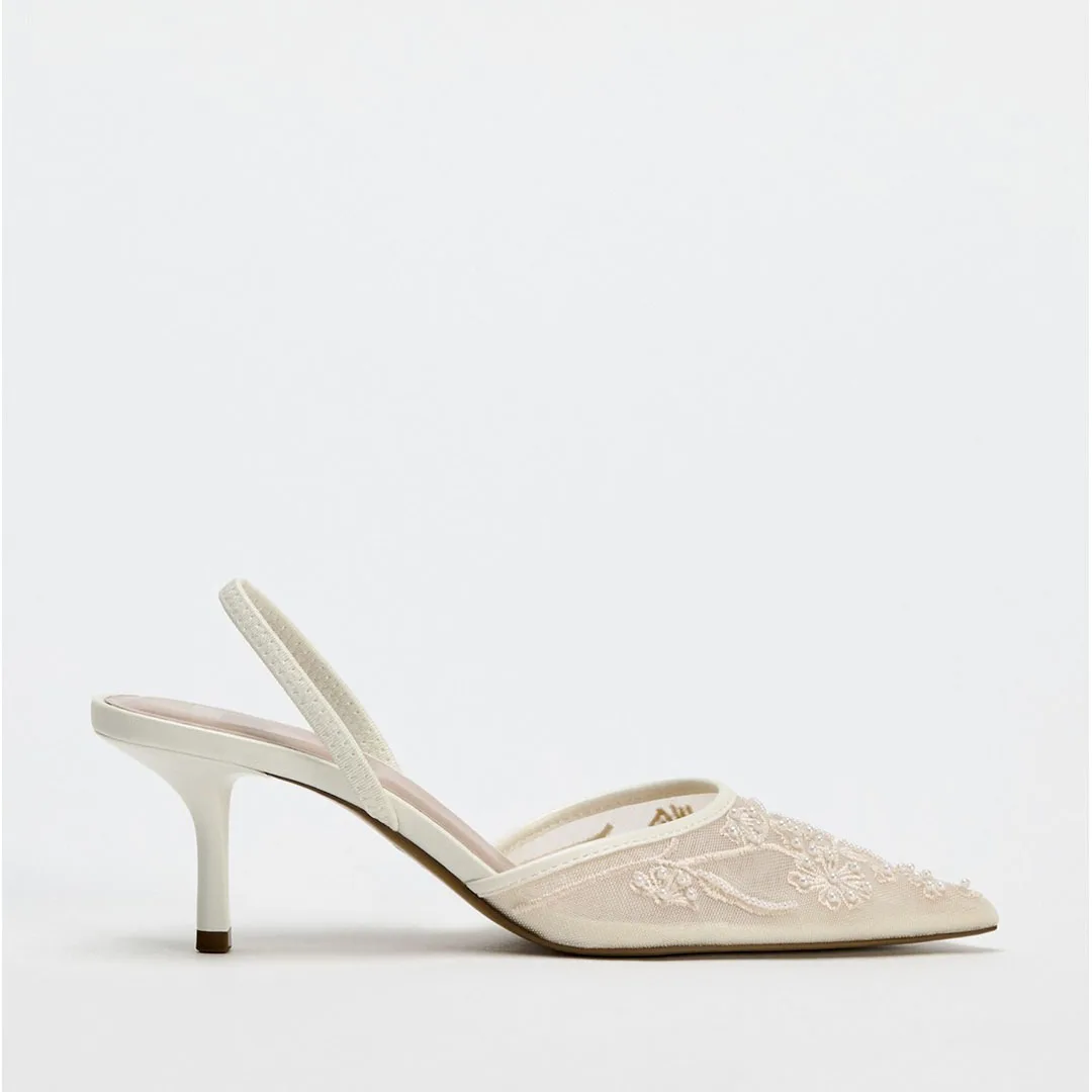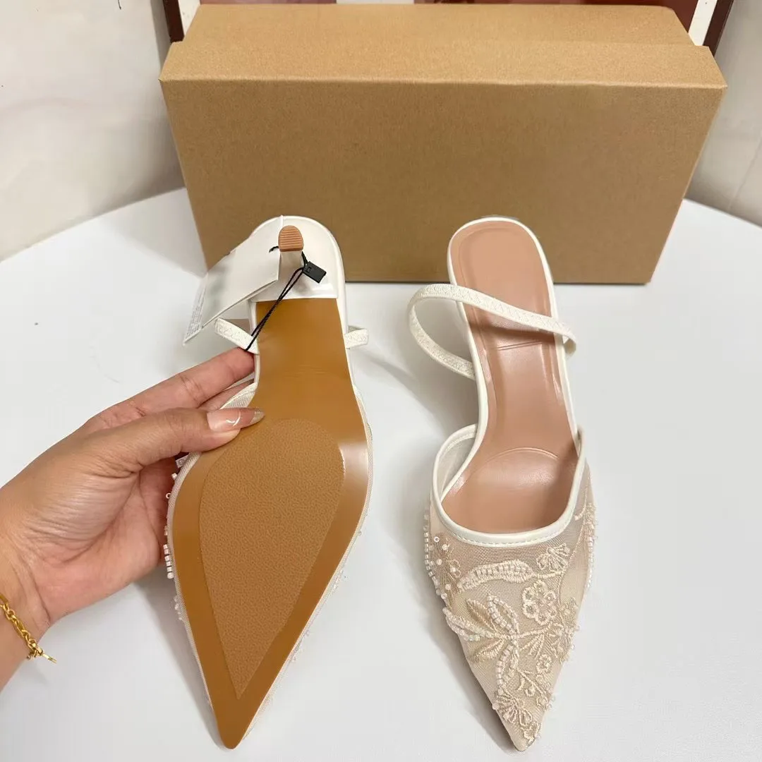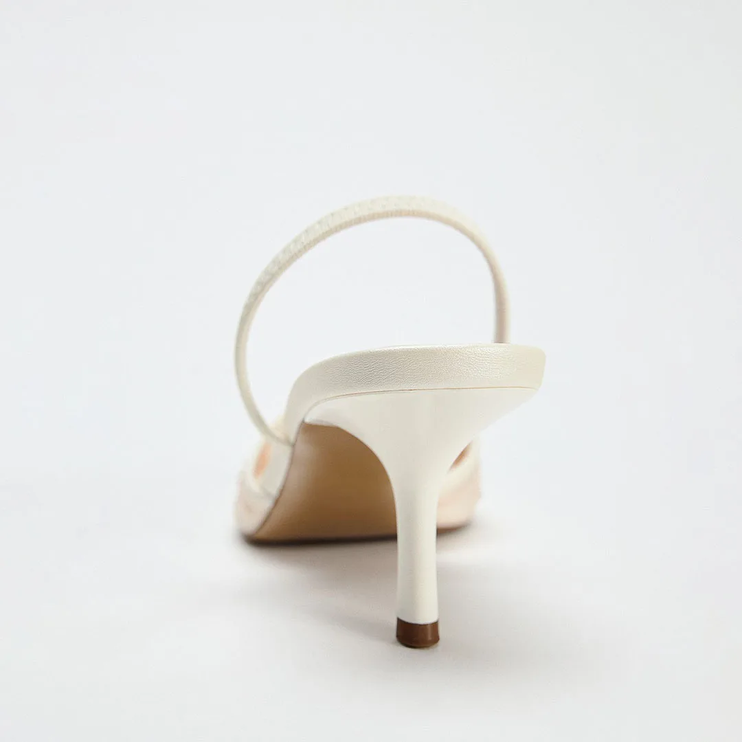TRAF White Embroidery Mesh Stiletto Pumps New French Style Thin Heel Slingbacks For Woman Summer Point Head Sandal Women’s Shoes