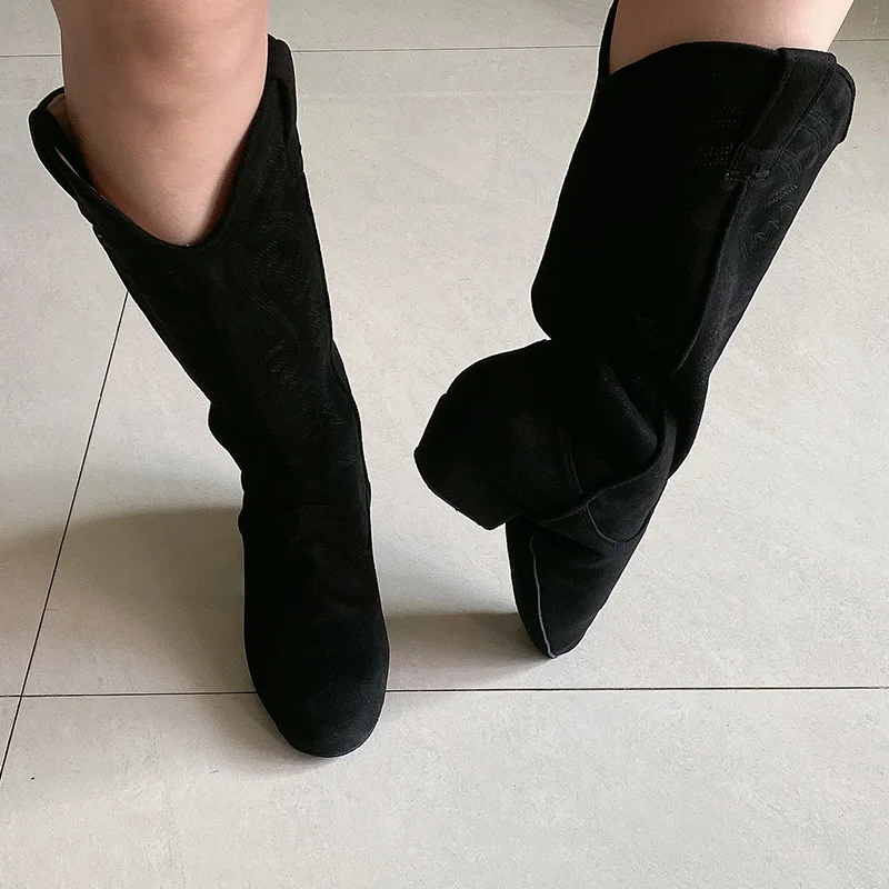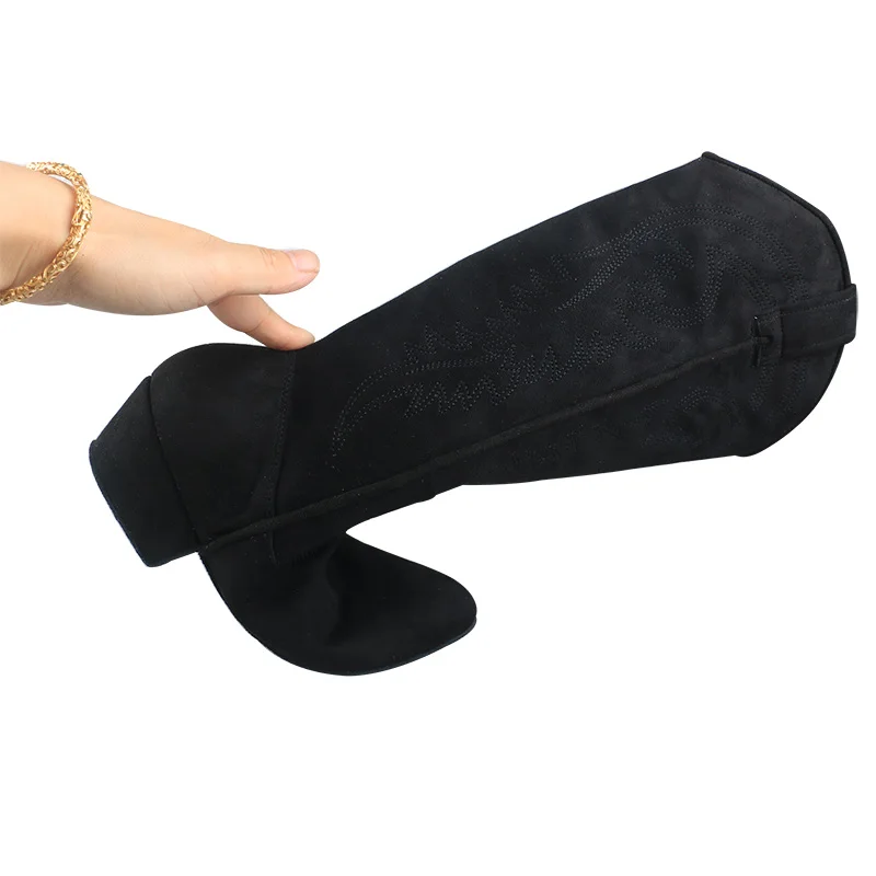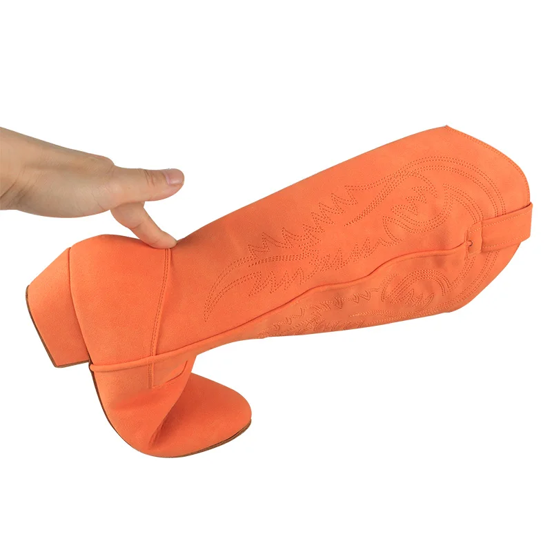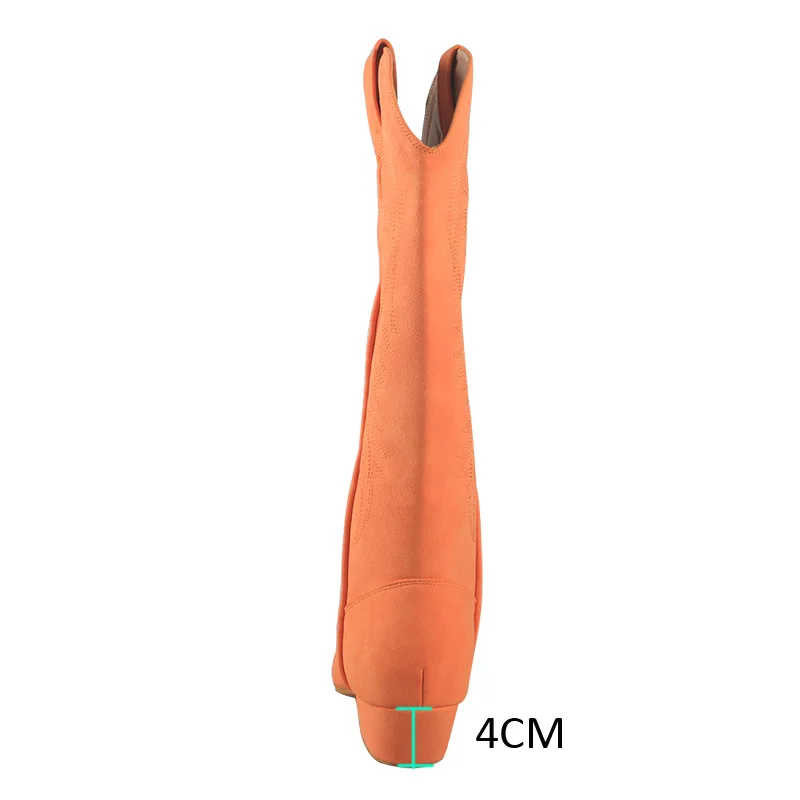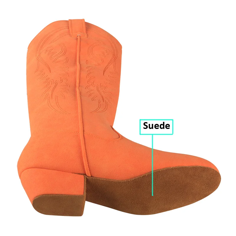 Wedopus Customized Heel High Quality Country Women Boots Suede Sole Orange Line Dance Shoes Boots no Zipper Swayd Dance Boots