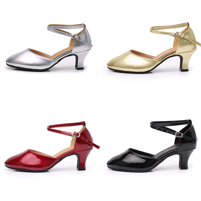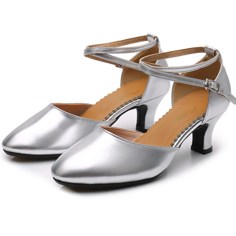 Women Glitter Leather Latin Dance Shoes Closed Toe Soft Sole Salsa Modern Shoe Tango Ballroom Dancing Shoes 3.5cm/5.5cm Heel