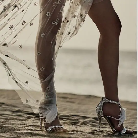 Women Sandals Summer Ladies Round Toe Sequined Cloth 11.5CM Thin High heels Slip On ZIP Rhinestones Bling women shoes size 35-42